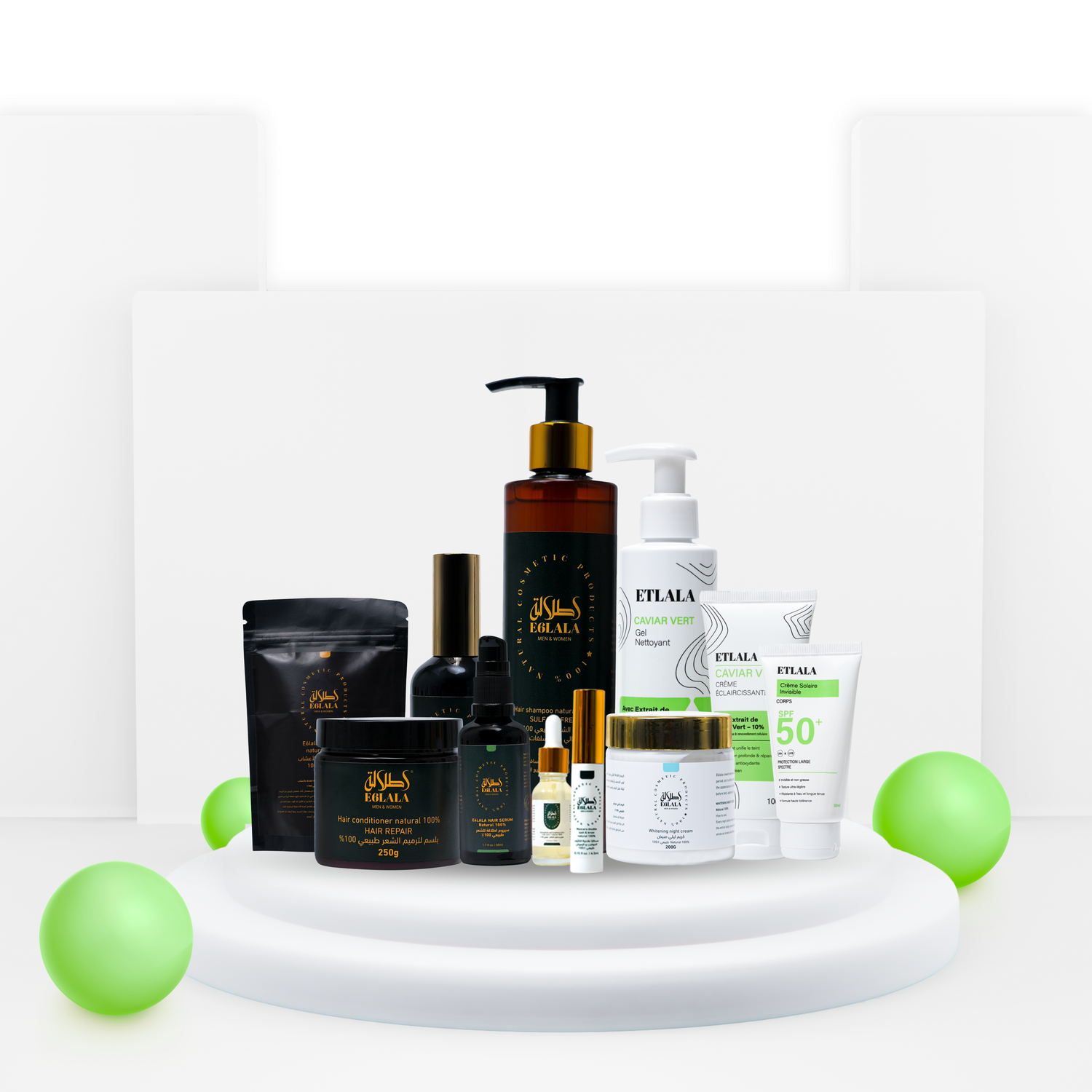 ETLALA est née au cœur du Sahara marocain, inspirée des rituels ancestraux de beauté sahraouie. Du soin du visage à celui des cheveux et du corps, nous mêlons traditions transmises de génération en génération et formules naturelles modernes, pour offrir une routine complète qui reflète la beauté de la femme marocaine… avec simplicité et sincérité.