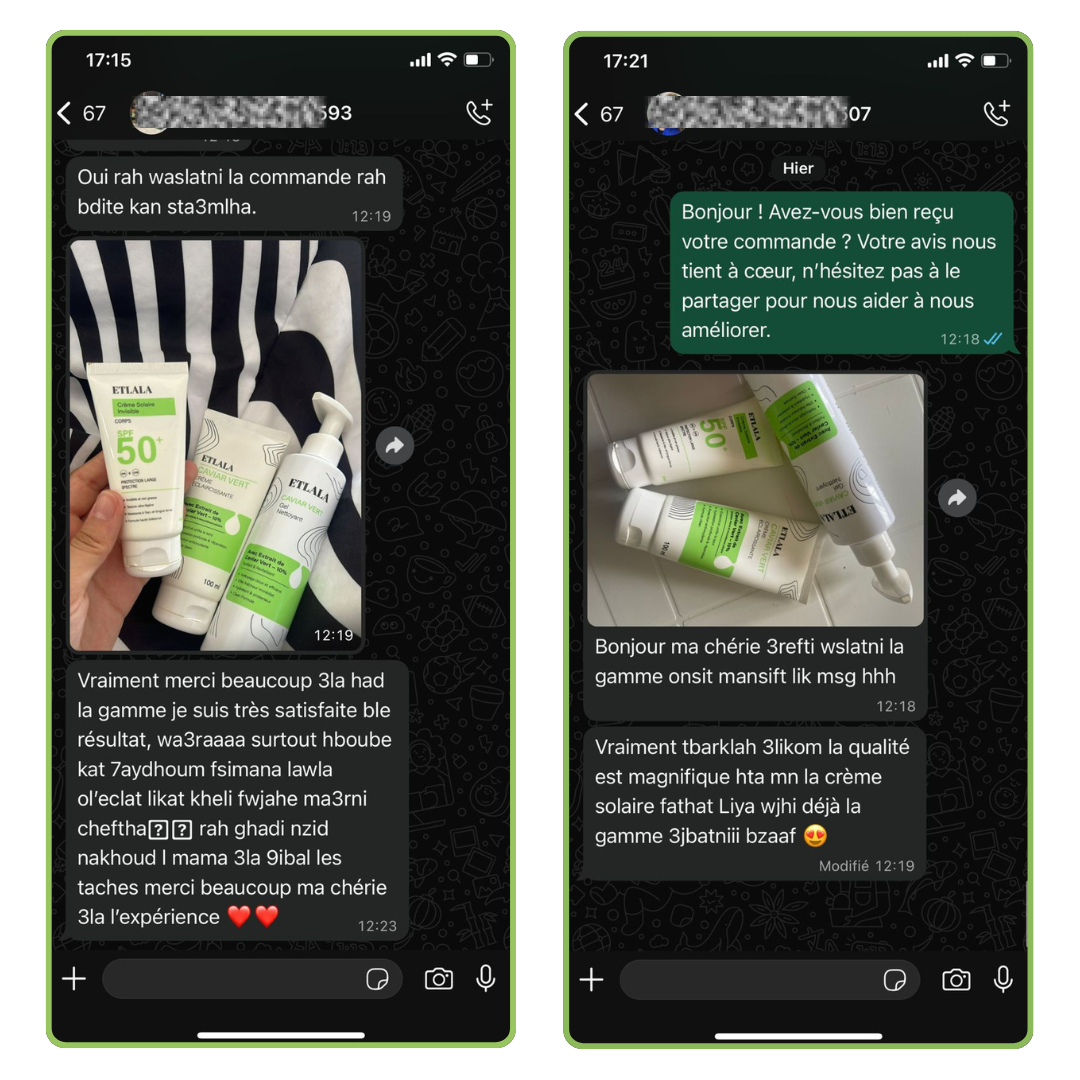 La crème éclaircissante E6LALA est bien plus qu’un soin classique. Sa formule unique au caviar vert agit en profondeur pour corriger les taches pigmentaires, lisser le teint et booster l’éclat naturel de la peau. Riche en actifs éclaircissants doux (niacinamide & arbutine), elle traite sans agresser, pour un résultat progressif, naturel et sans effet blanchissant artificiel.